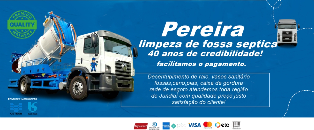 Limpa Fossa e Desentupidora Pereira tem como excelência todas às demandas de nossos clientes a partir do desenvolvimento e oferta de produtos e serviços que contribuam para a melhoria da qualidade de vida das pessoas, gerando riqueza de forma sustentável.